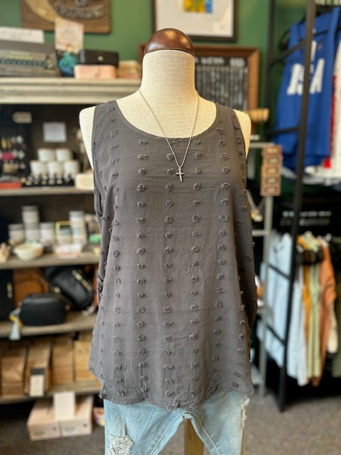 $10 Rack - Ash Grey Swiss Dot Tank Top