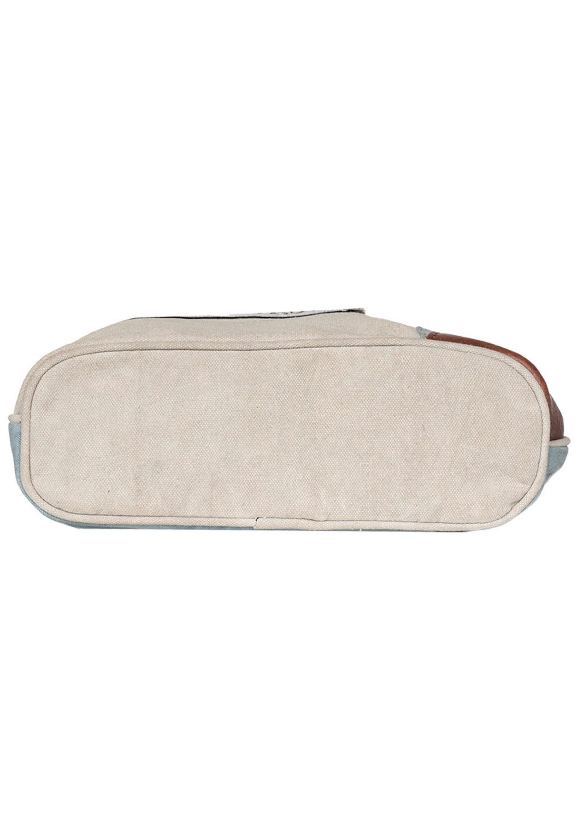 Size: 11" W x 12.5" H x 3" D Handle: 15" Adjustable Crossbody Strap Interior Features: Zip Pocket & Dual Slip Pockets Exterior Feature: Exterior Slip Pocket, Rear Pocket With Zipper Closure: Zip-Top Closure Material: Up-Cycled Canvas
